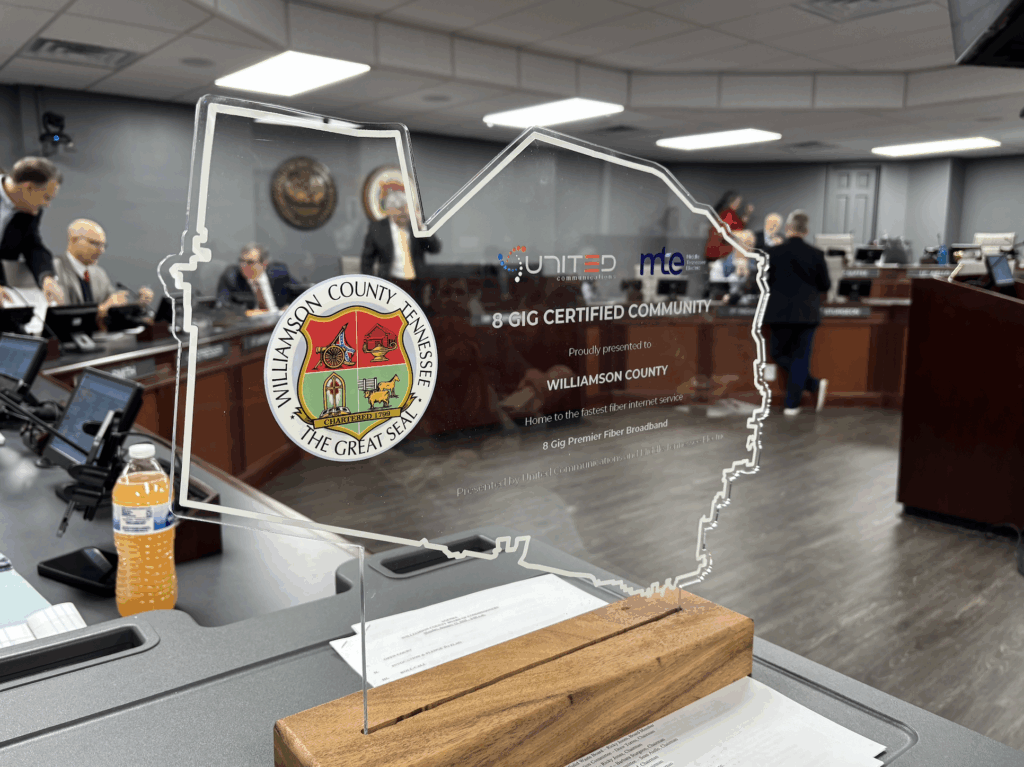 Williamson County was named the region’s first 8 Gig Certified County during a county commission meeting on Monday. United Communications has invested more than $60 million to build a fiber network across Williamson County, reaching more than 28,000 homes and businesses. The City of Fairview also recently received its 8 Gig certification at a town council meeting in late 2025.